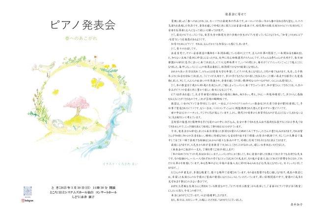 毎年、ピアノ発表会を開いています。